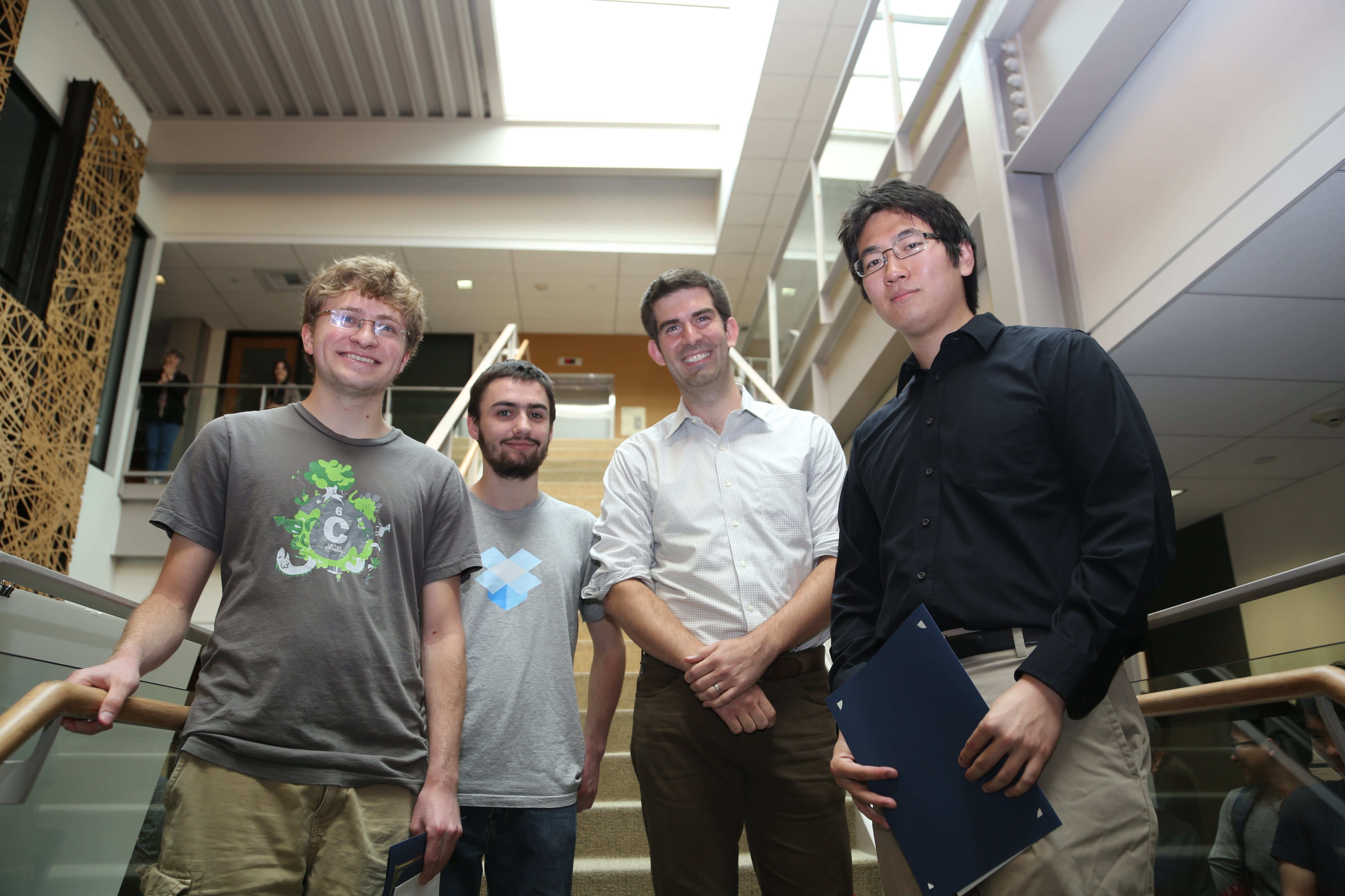 Bryan He, a senior student advised by Yisong Yue, and William Hoza, a junior student advised by Leonard Schulman, are the recipients of the 2015 Bhansali Prize. Nicholas Schiefer, a junior student advised by Erik Winfree, won an honorable mention for the Prize. The Bhansali Prize is typically awarded to one undergraduate student for outstanding research in Computer Science in the current academic year, but due to the number of particularly high-caliber candidates in 2015, the Bhansali Prize committee determined that multiple students deserved the award.
