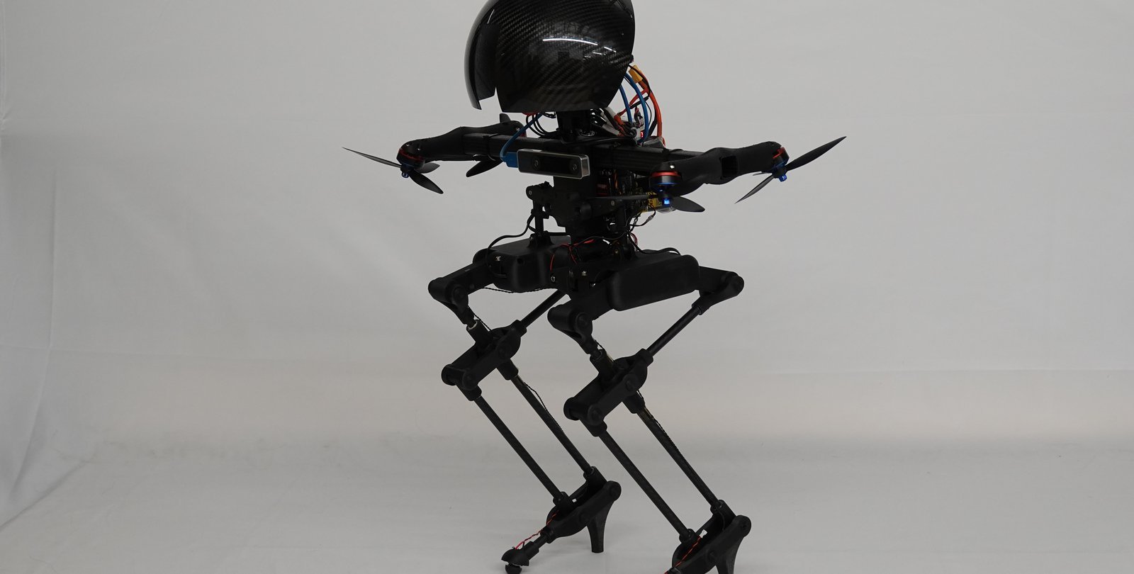 Researchers have built a bipedal robot that combines walking with flying to create a new type of locomotion, making it exceptionally nimble and capable of complex movements. "We drew inspiration from nature. Think about the way birds are able to flap and hop to navigate telephone lines," says Soon-Jo Chung, Bren Professor of Aerospace and Control and Dynamical Systems; Jet Propulsion Laboratory Research Scientist. "A complex yet intriguing behavior happens as birds move between walking and flying. We wanted to understand and learn from that." A paper titled "A bipedal walking robot that can fly, slackline, and skateboard" about the LEO robot was published online on October 6 and was featured on the October 2021 cover of Science Robotics. [Caltech story]